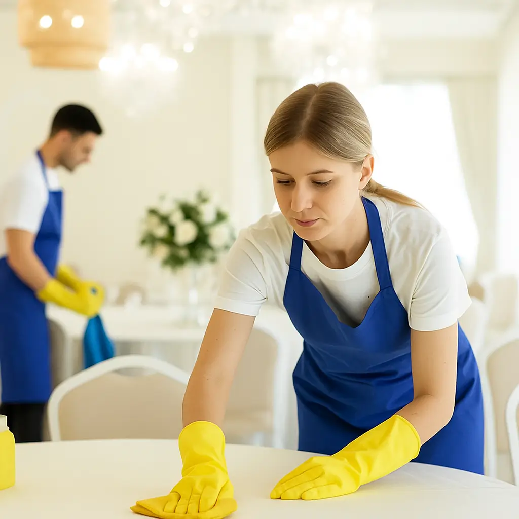 We provide cleaning services for all kinds of events — weddings, birthdays, corporate functions, exhibitions, private parties, and more.